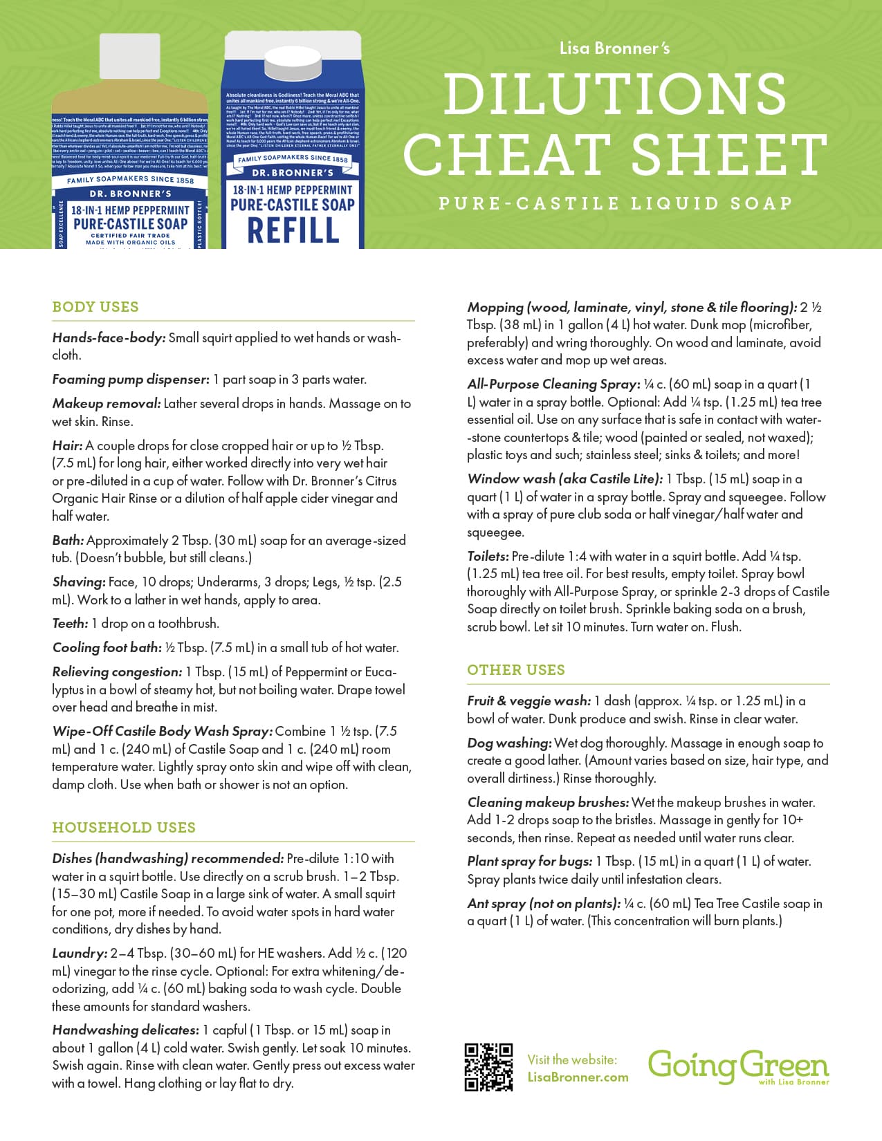 Check out Lisa Bronner’s article “ GIY All-Purpose Cleaning Spray ” on Going Green for more tips!